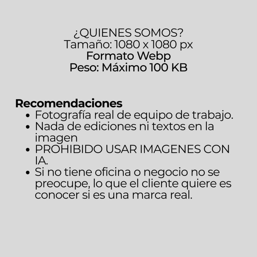 Prompt: Somos [NOMBRE DE LA MARCA], somos una empresa ubicada en [Ciudad], nuestro equipo esta conformado por [# personas], nos dedicamos a [Venta de que?] y nuestros valores son [que representa la marca].